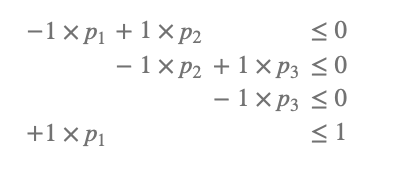 The second line indicates that \(p_2\) should be greater than or equal to \(p_3\) for the same reason.