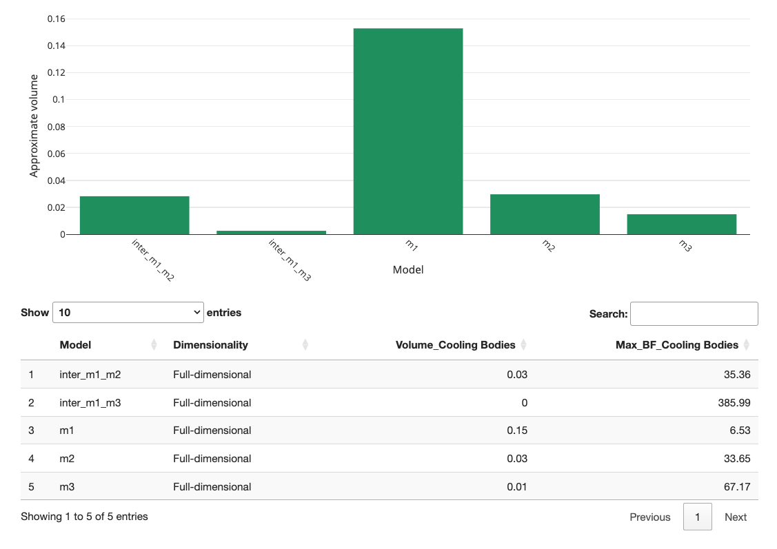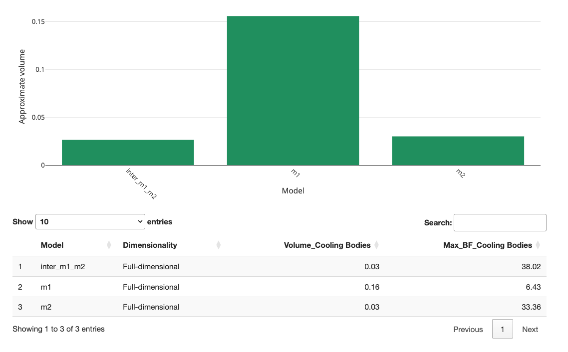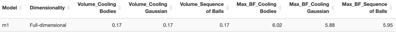 To calculate the volume of the model, navigate to the Parsimony tab, choose at least one algorithm, and click on the Go button. The fairy, ever the resourceful one, utilizes an R package (Fisikopoulos & Chalkis, 2023) to compute volumes: